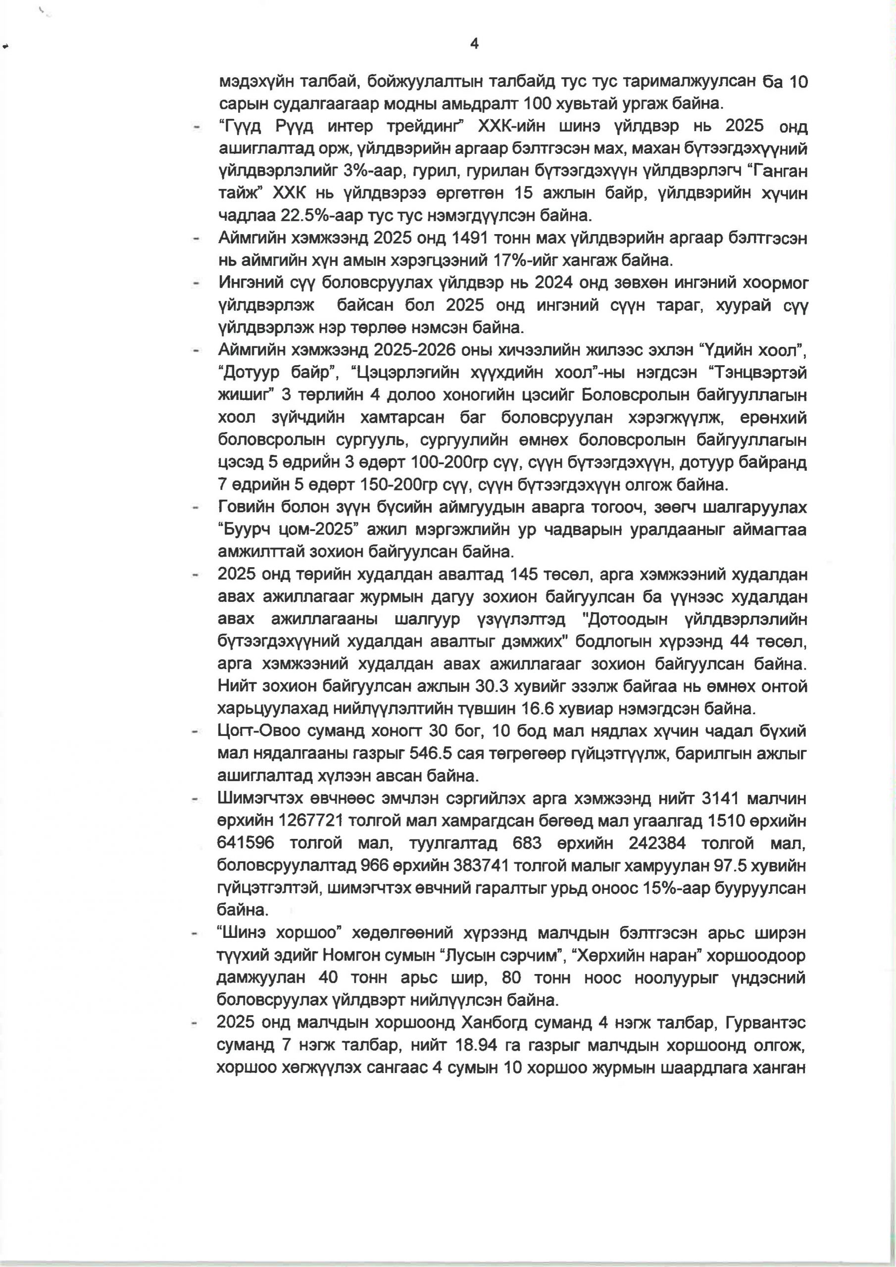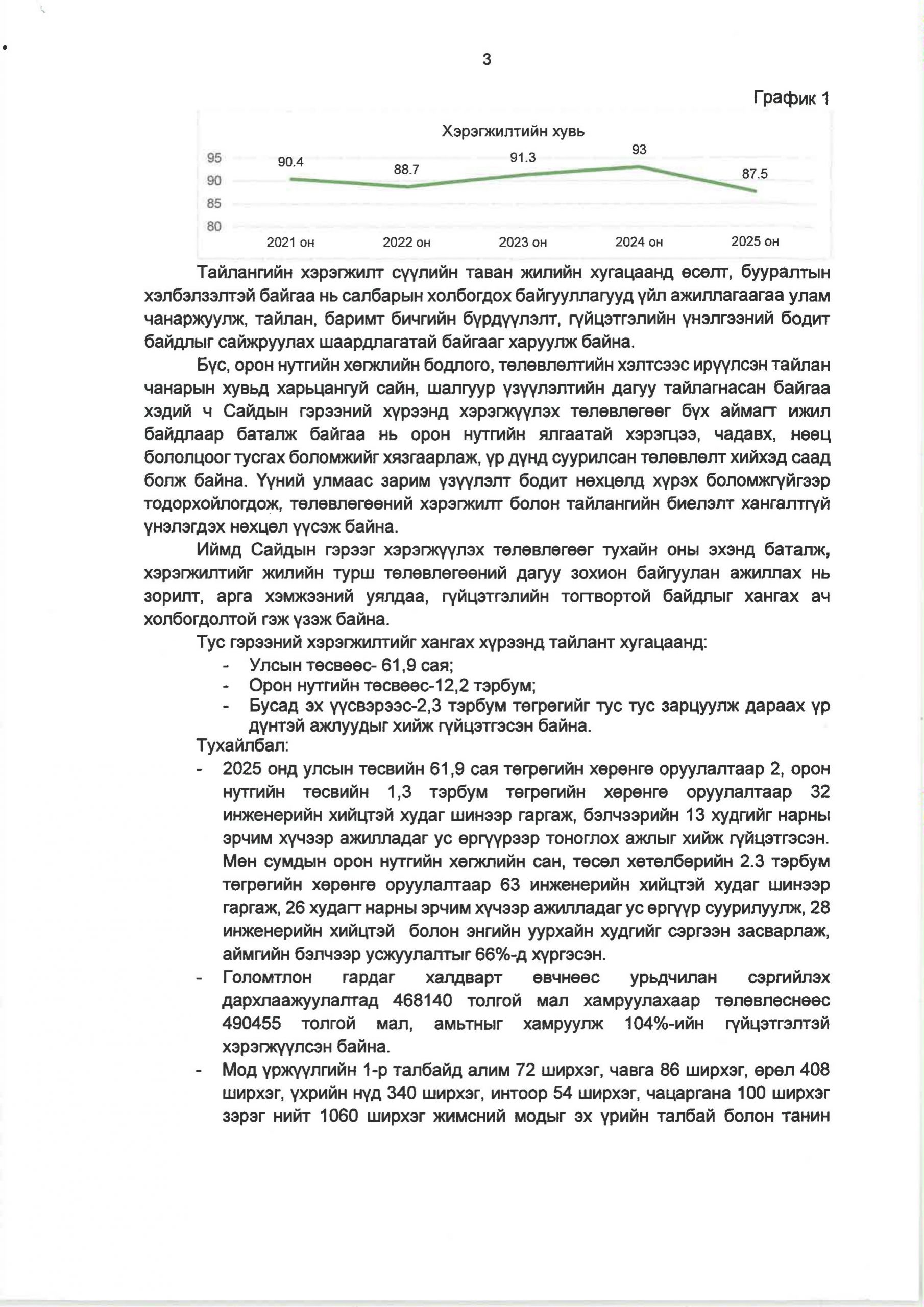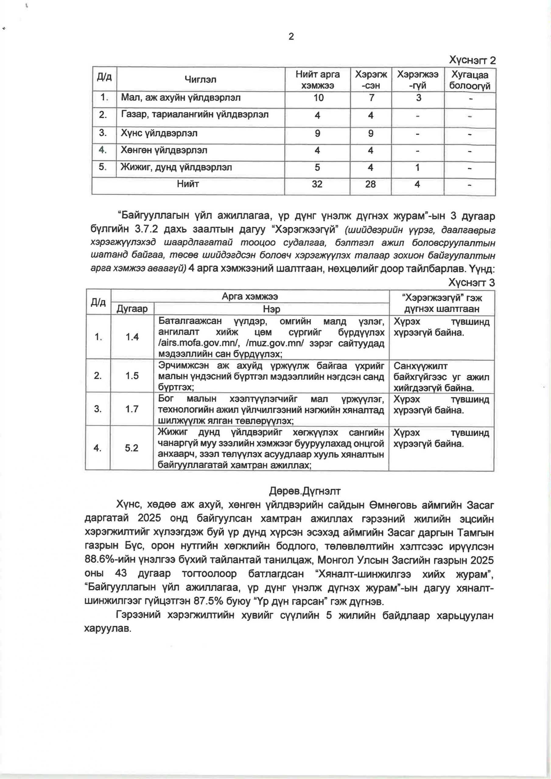 Дэлгэрэнгүй мэдээлэл авах эх сурвалж: Захиргаа удирдлагын хэлтсийн Хяналт шинжилгээ, үнэлгээ, дотоод аудит хариуцсан мэргэжилтэн Э.Алтантуяа