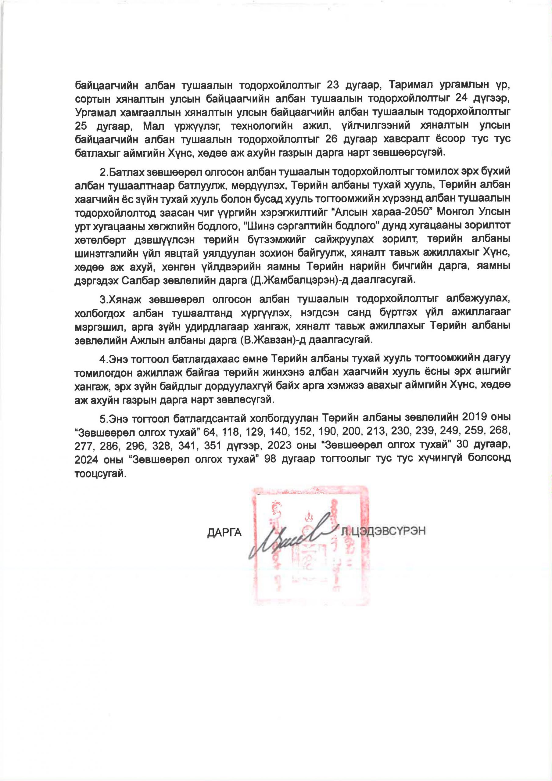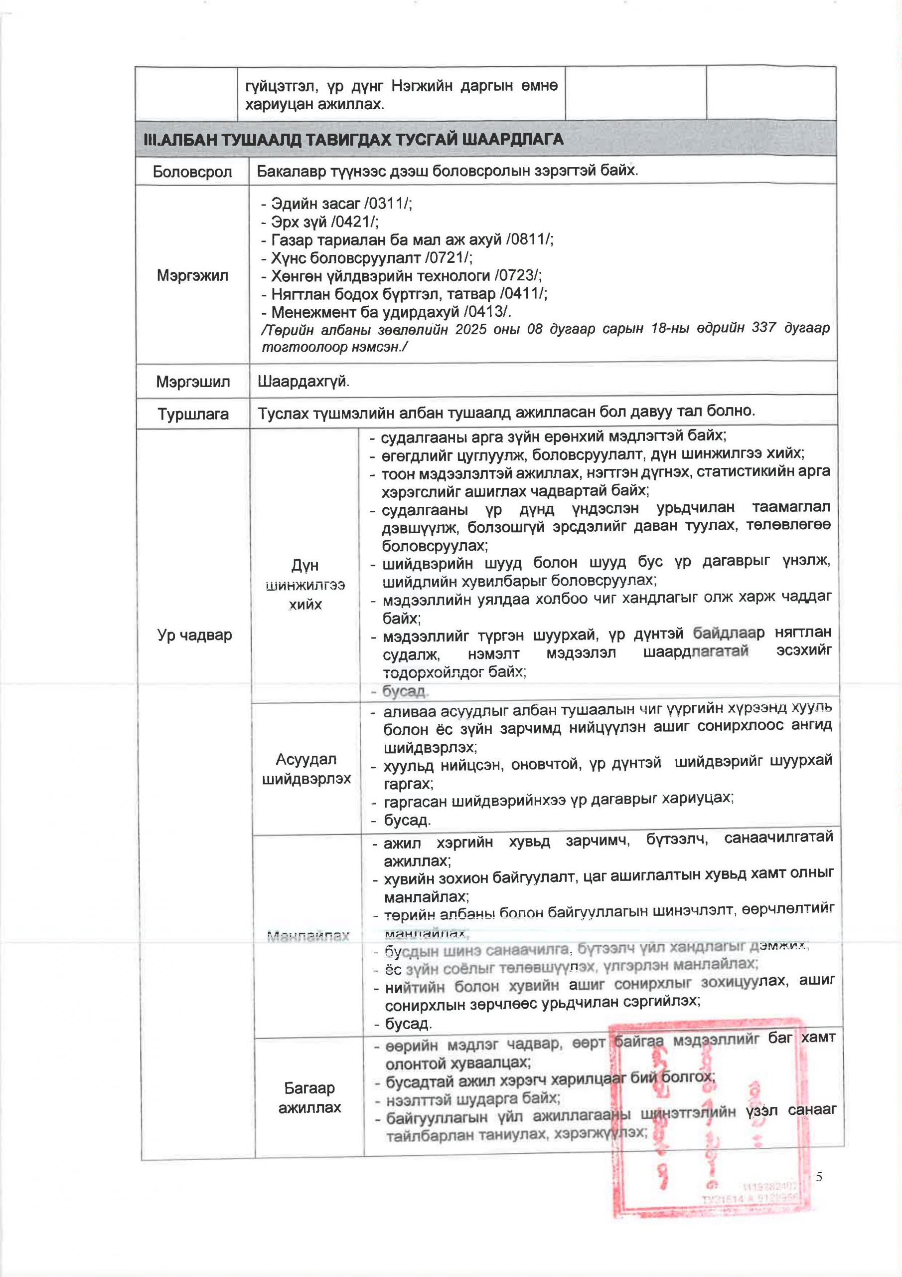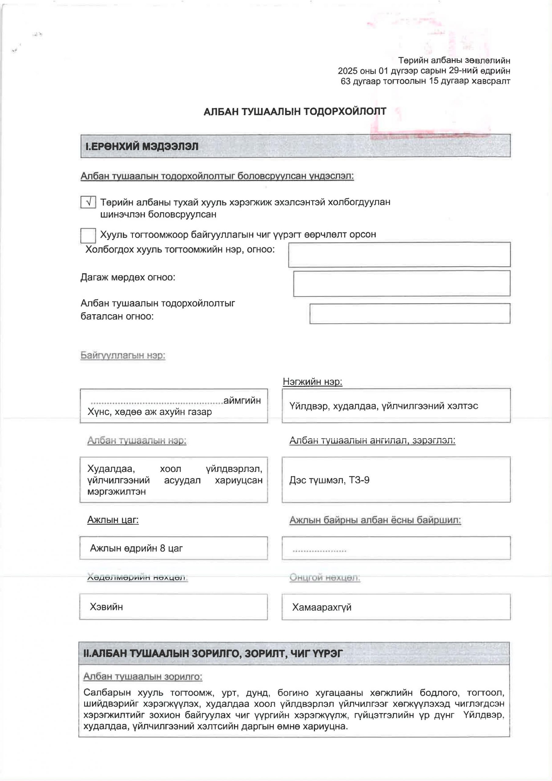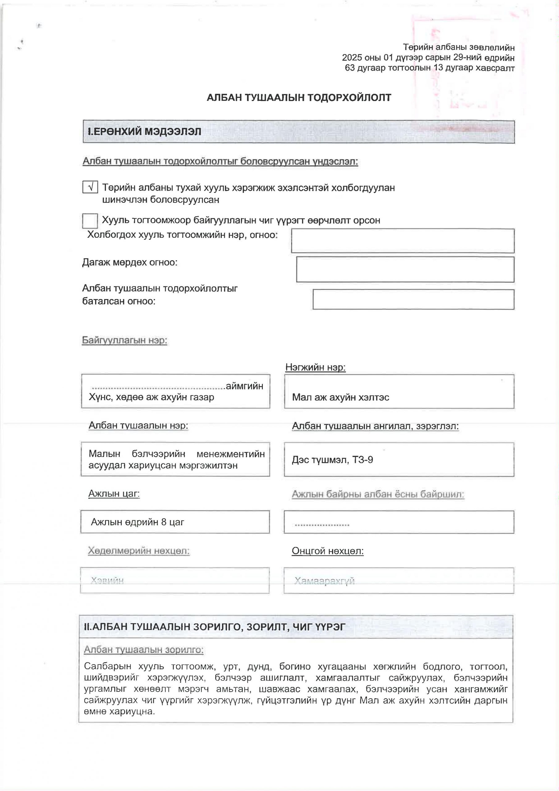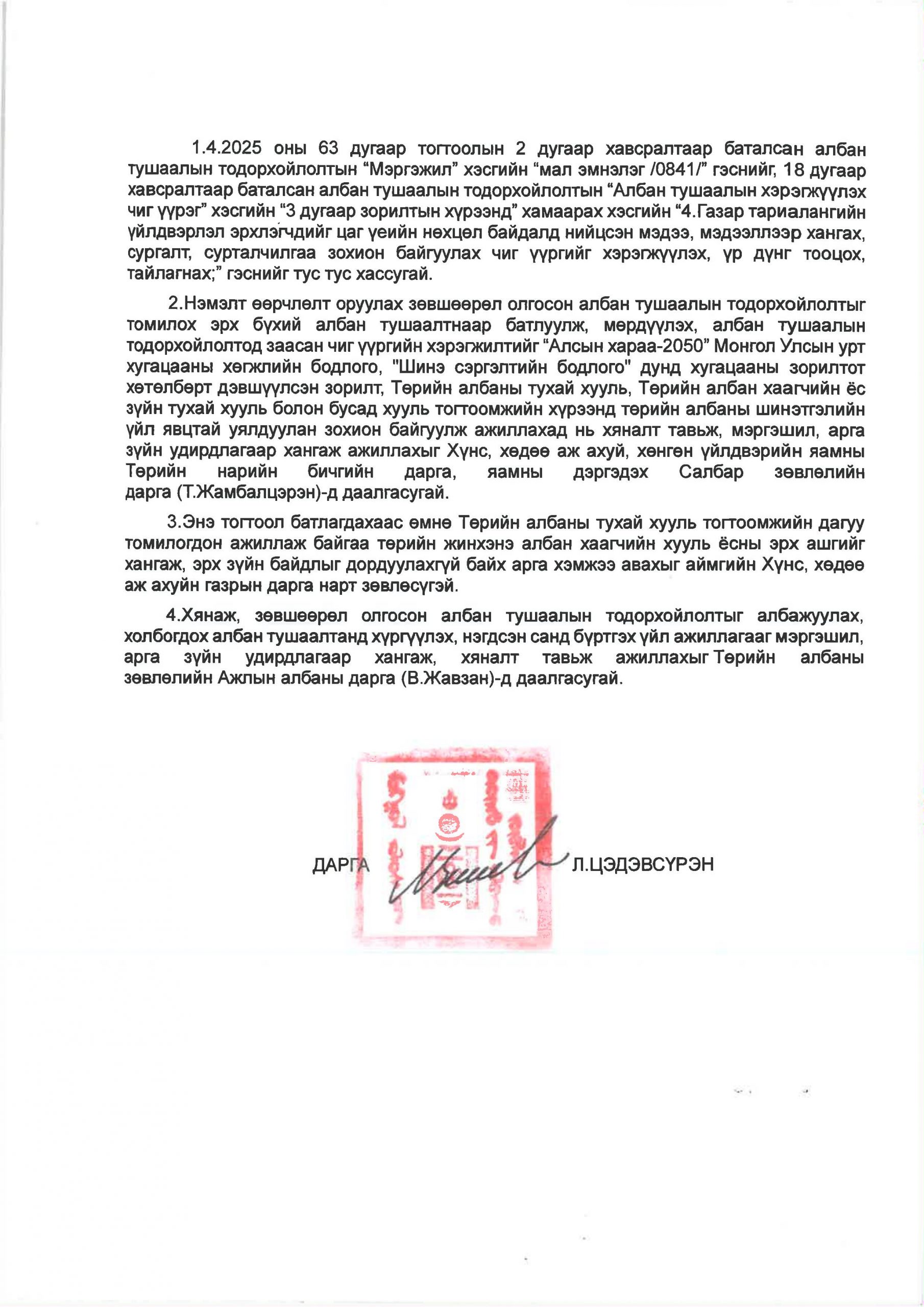 Дэлгэрэнгүй мэдээлэл авах эх сурвалж: Захиргаа удирдлагын хэлтсийн Хяналт шинжилгээ, үнэлгээ, дотоод аудит хариуцсан мэргэжилтэн Э.Алтантуяа