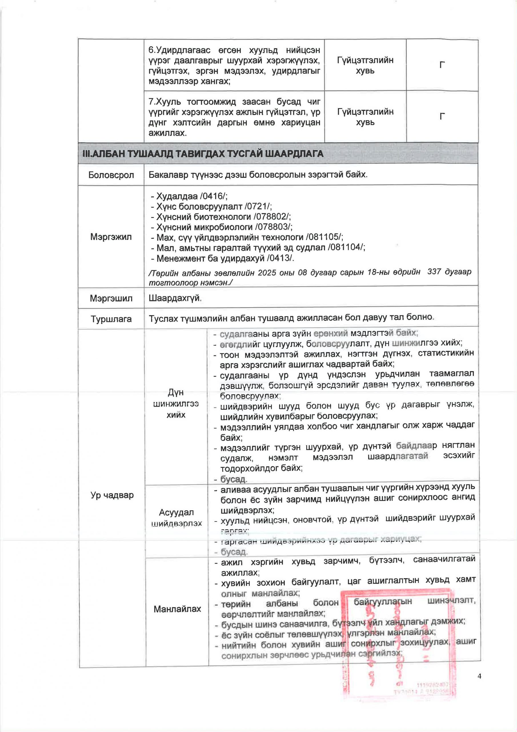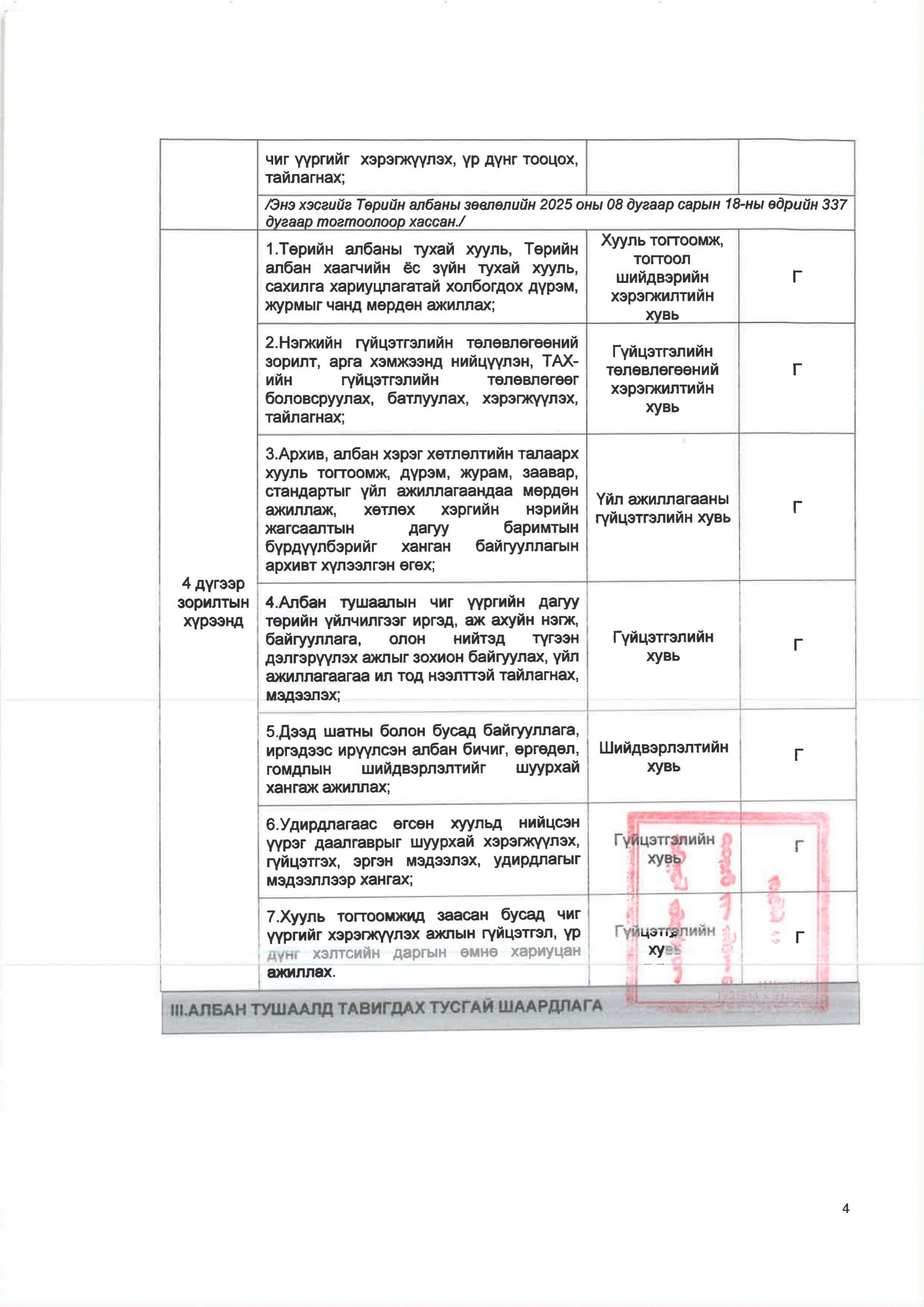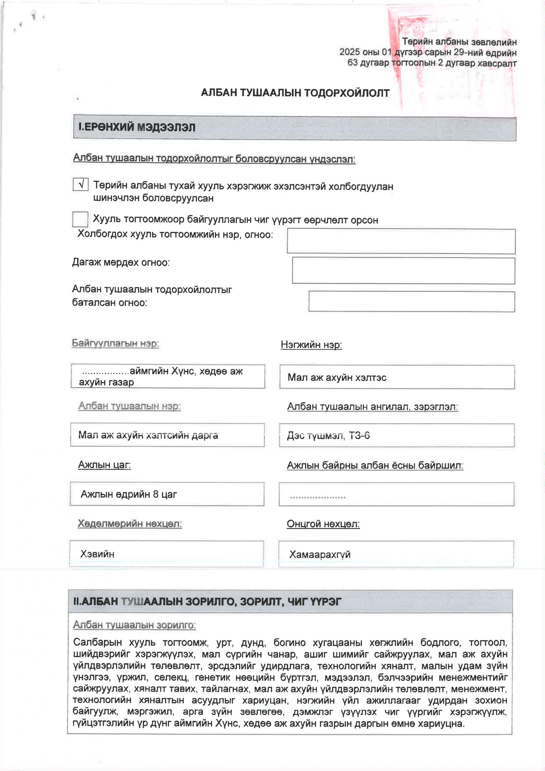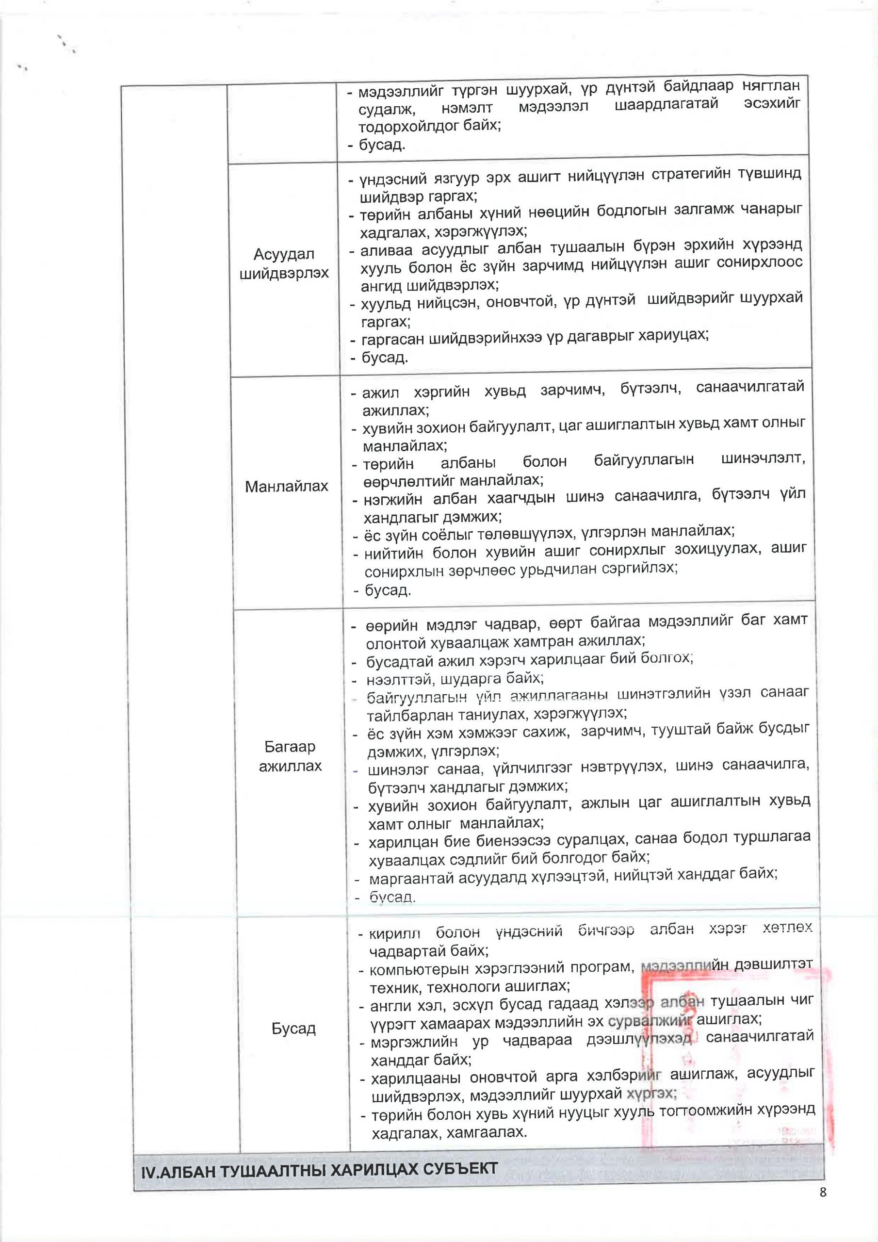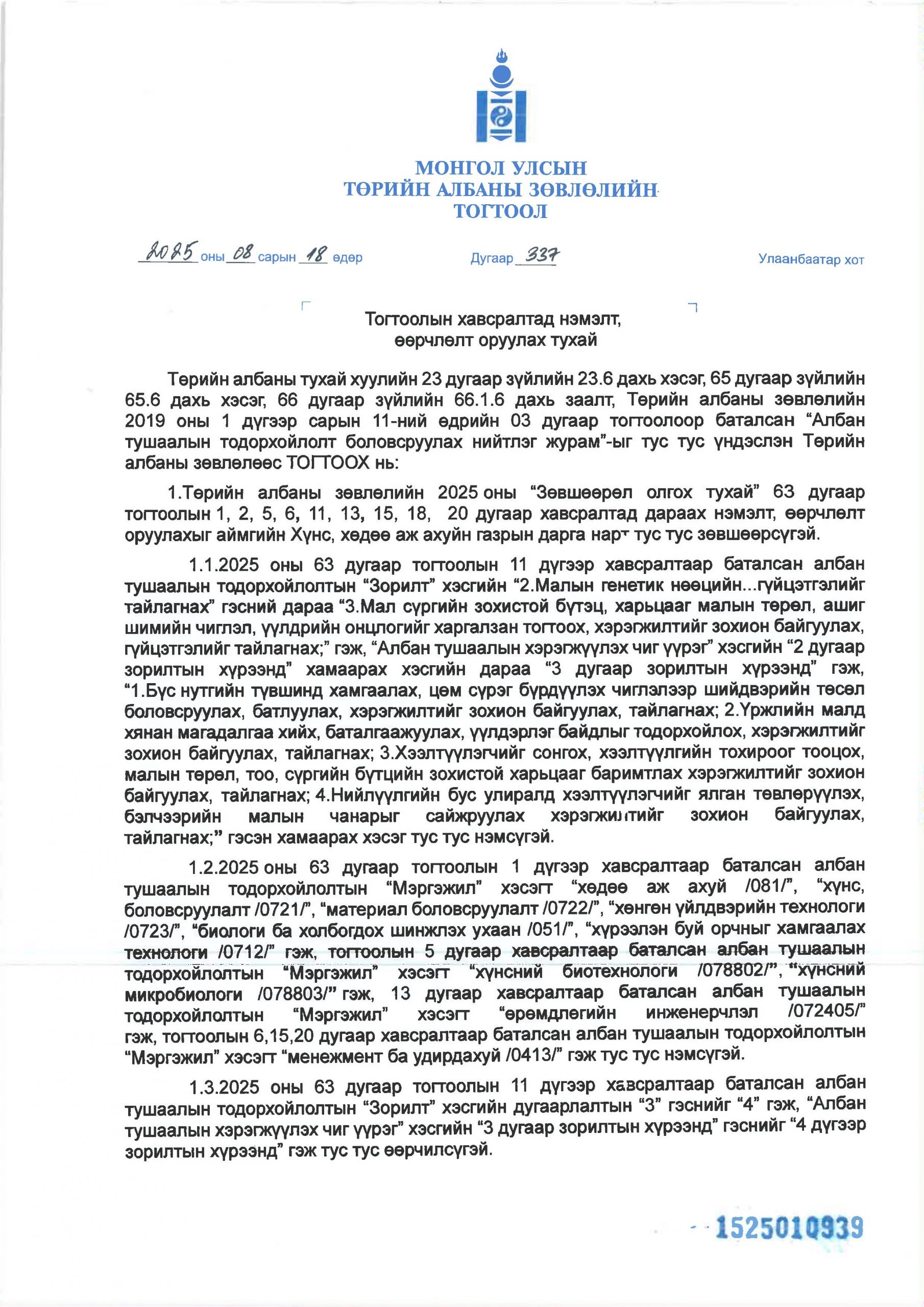 Дэлгэрэнгүй мэдээлэл авах эх сурвалж: Захиргаа удирдлагын хэлтсийн Хяналт шинжилгээ, үнэлгээ, дотоод аудит хариуцсан мэргэжилтэн Э.Алтантуяа